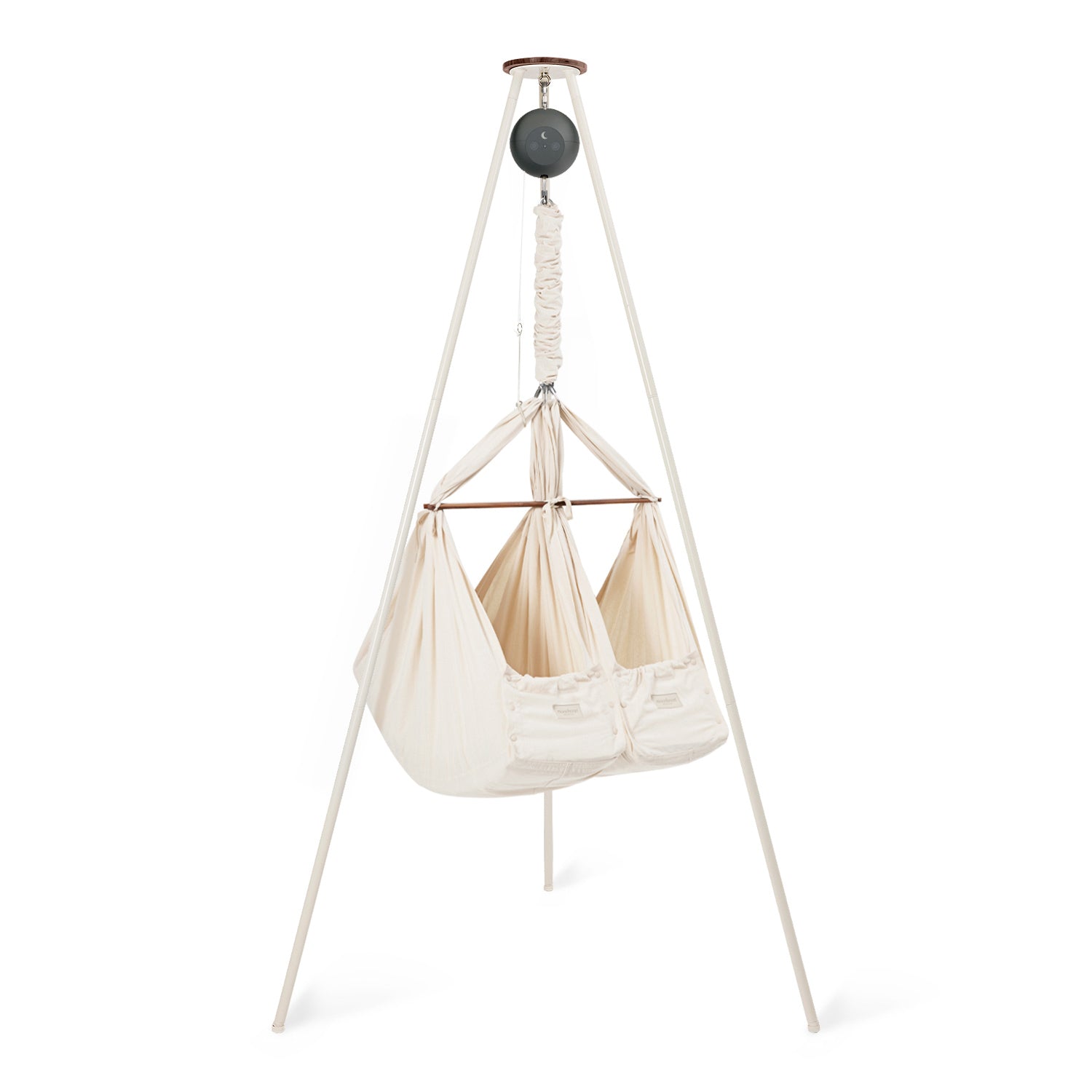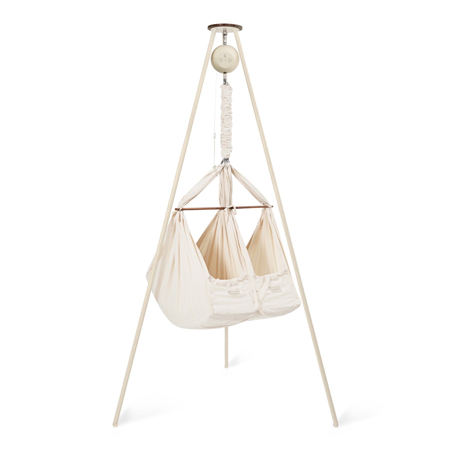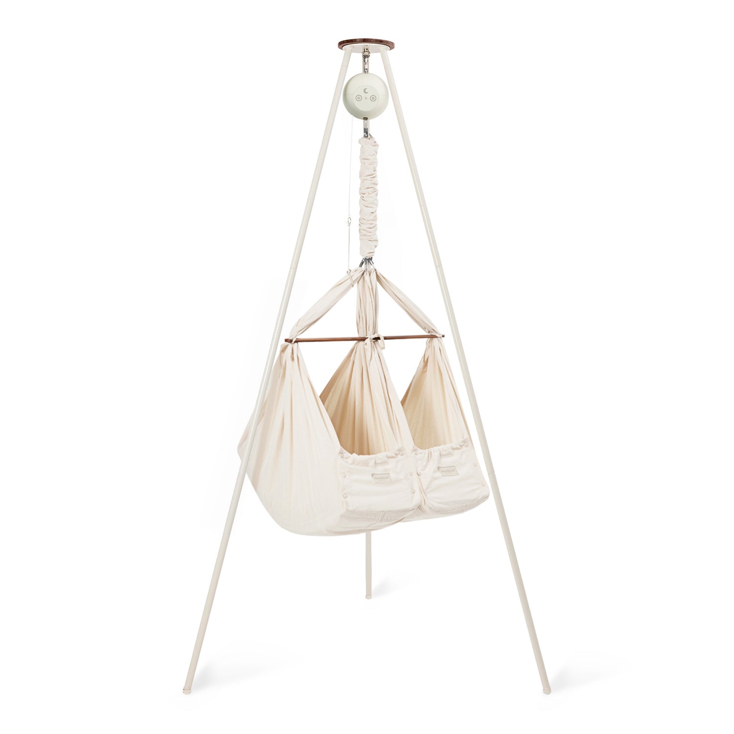 In the classic twin baby hammock bundle, you can combine this baby sleep miracle with one of our quiet rocking motors and a sturdy and stylish tripod stand, giving you an all-in-one solution to start helping your little ones spend more time dreaming. You have the choice between one of our app-controlled cradle bouncers: Motor Connect Basic and Motor Connect Premium.
