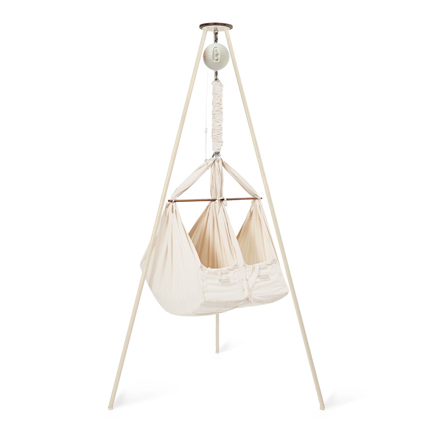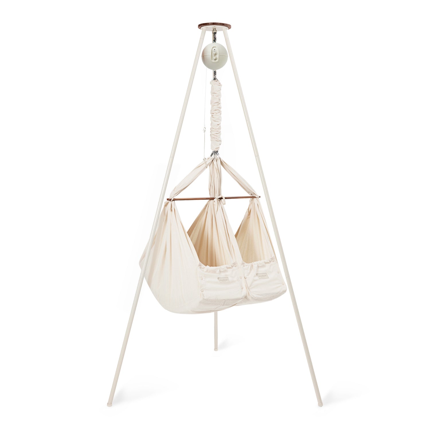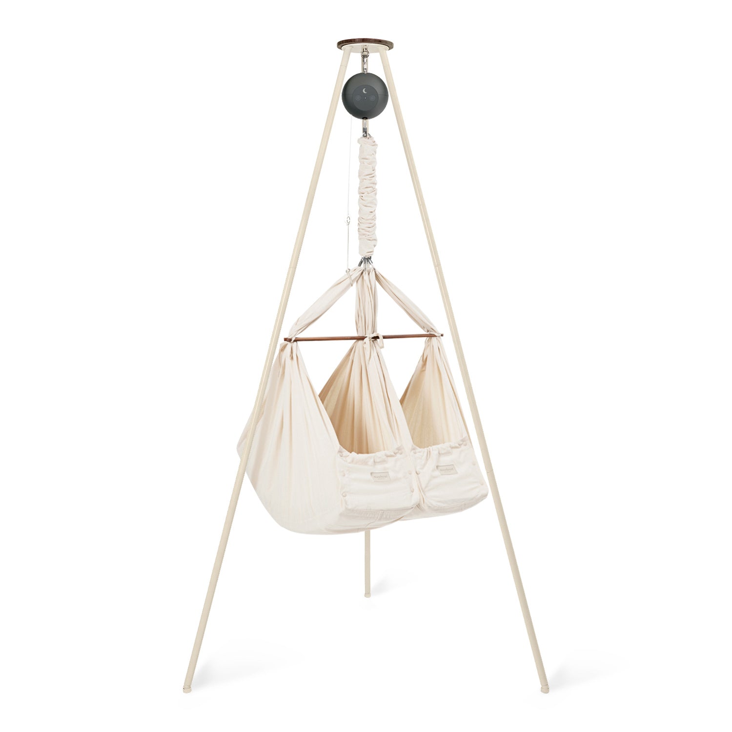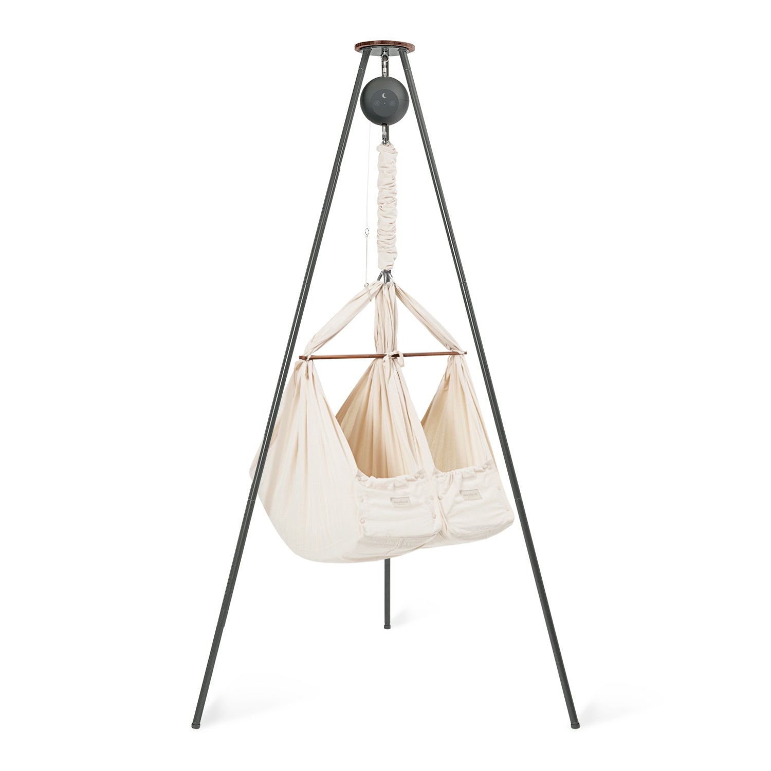 In the classic twin baby hammock bundle, you can combine this baby sleep miracle with one of our quiet rocking motors and a sturdy and stylish tripod stand, giving you an all-in-one solution to start helping your little ones spend more time dreaming. You have the choice between one of our app-controlled cradle bouncers: Motor Connect Basic and Motor Connect Premium.